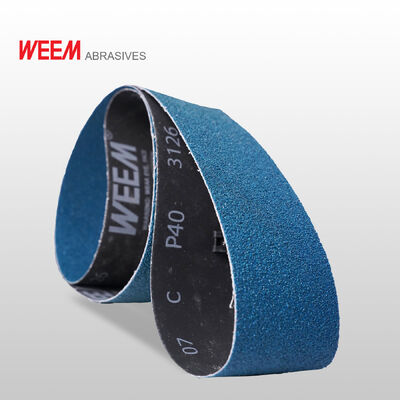 WEEM 3126-13 schuurriemen zijn gemaakt met zelf-scherpend Zirkonium Aluminium korrel, hars over hars, gesloten coating op duurzame en heavy duty Y-gewicht waterdichte polyester rug. Het wordt gemaakt in de maat van 11 7/8" x 29 1/2 " (300mm x 750mm), de juiste maat voor vloerbandschuurmachines.